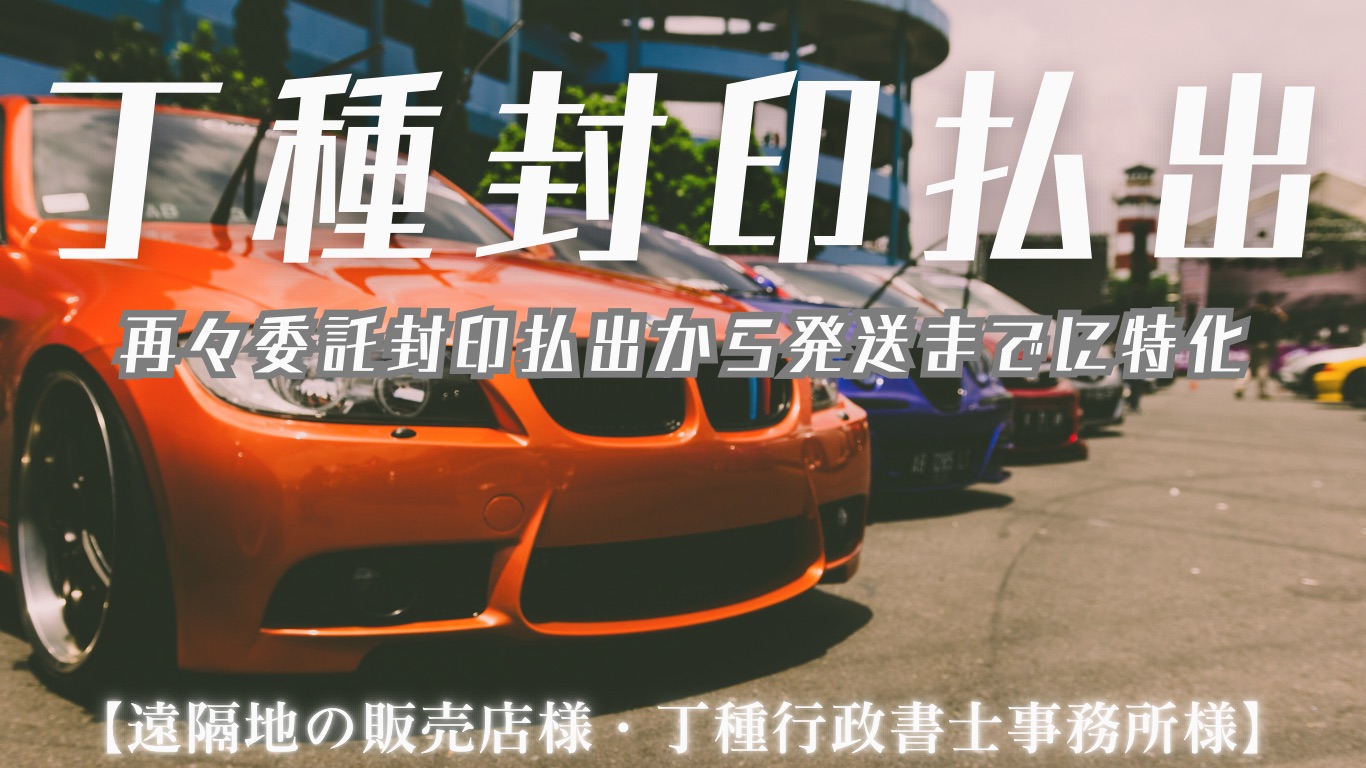 丁種封印は以前までの規制が改正されており、現在どの販売店様の販売したお車にも使用可能です。(※送付先・施封者は丁種封印権を保有する行政書士事務所のみとなります。)